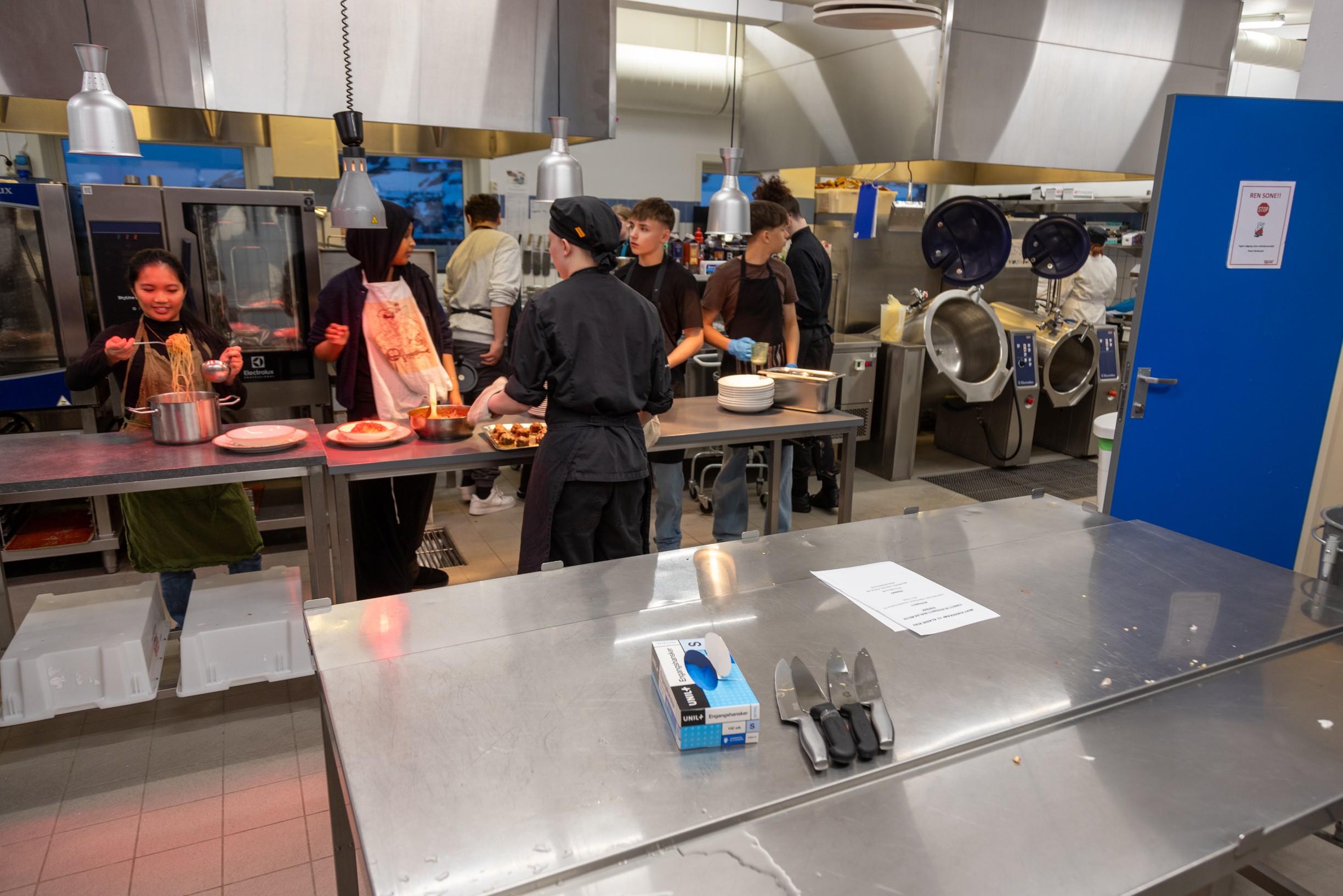 Det ble laget pasta og kjøttboller i ulike varianter. Til dessert valgt tre grupper berlinerboller. Den siste gruppa lagde en avansert variant av Brownies.