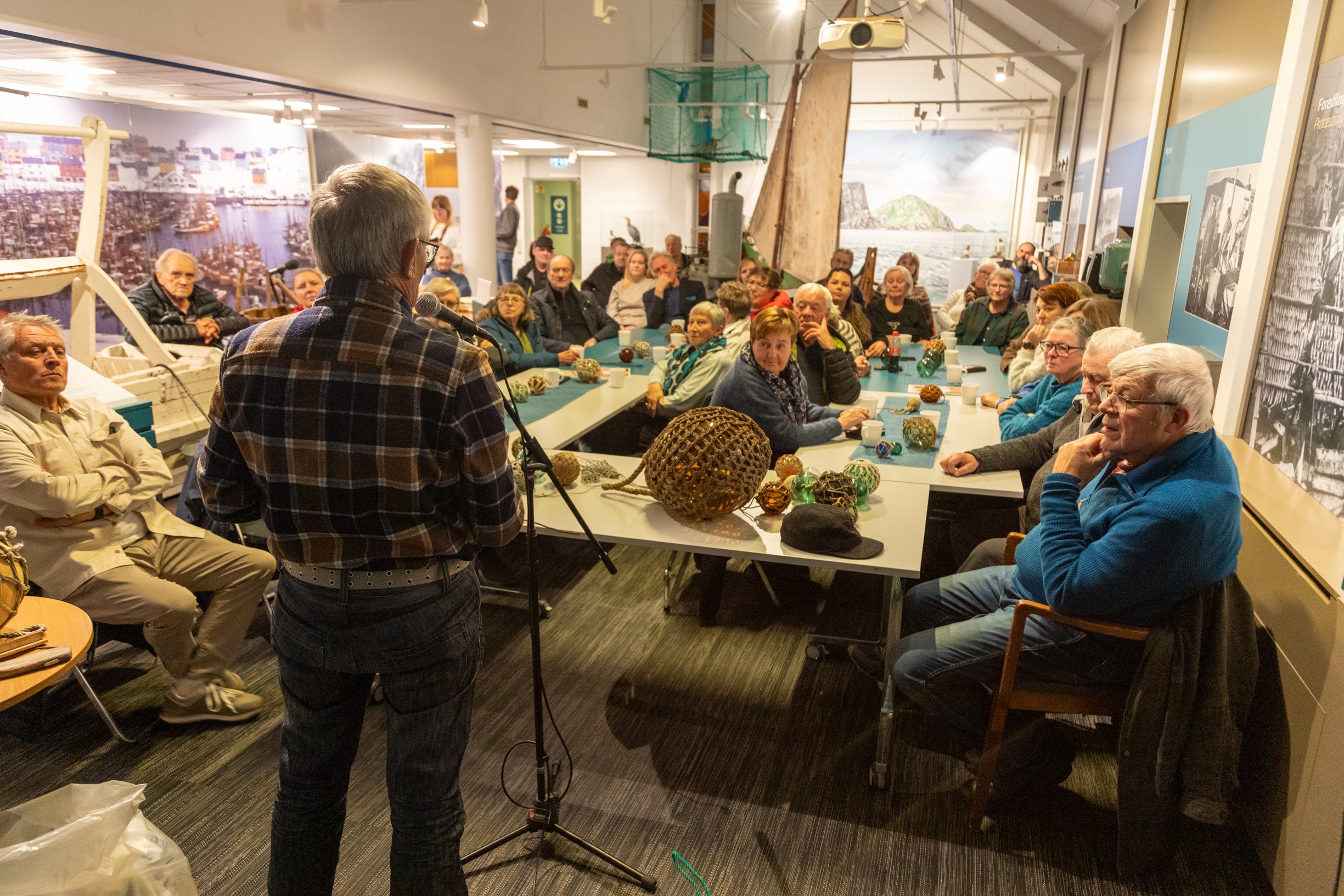 Fredag var det samtale om kystkultur på Nordkappmuseet, med særlig fokus på kavel og kavelhua, glasskulene som tidligere ble brukt som oppdrift på garn. Stein i bunnen av garnet ble brukt som søkke.