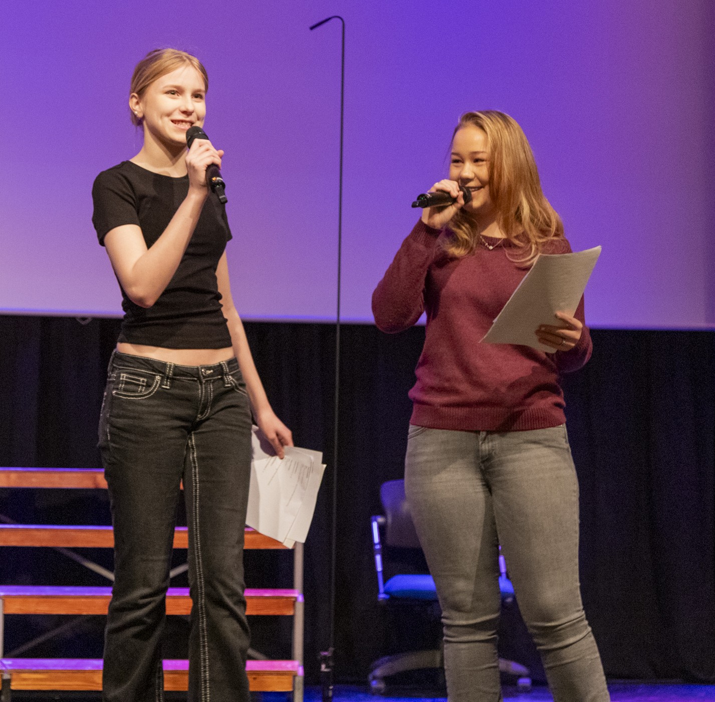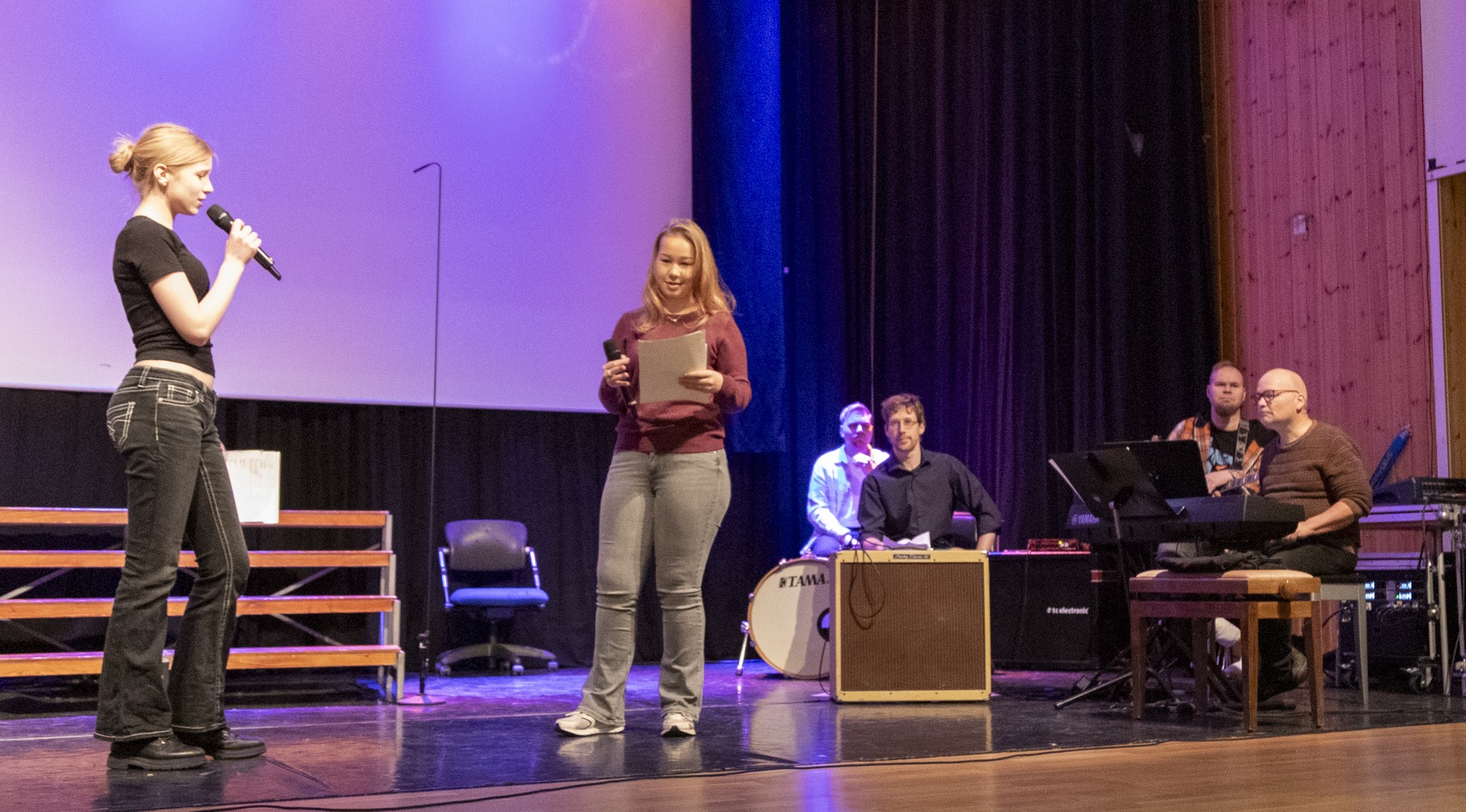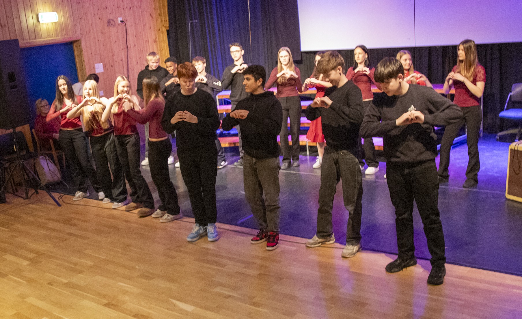 Konferansierene fikk også skryt for at de styrte showet med stødig hånd og humor som traff publikum. Etter innslagene fra klassene var det lærernes tur til å underholde, til stor jubel fra salen.