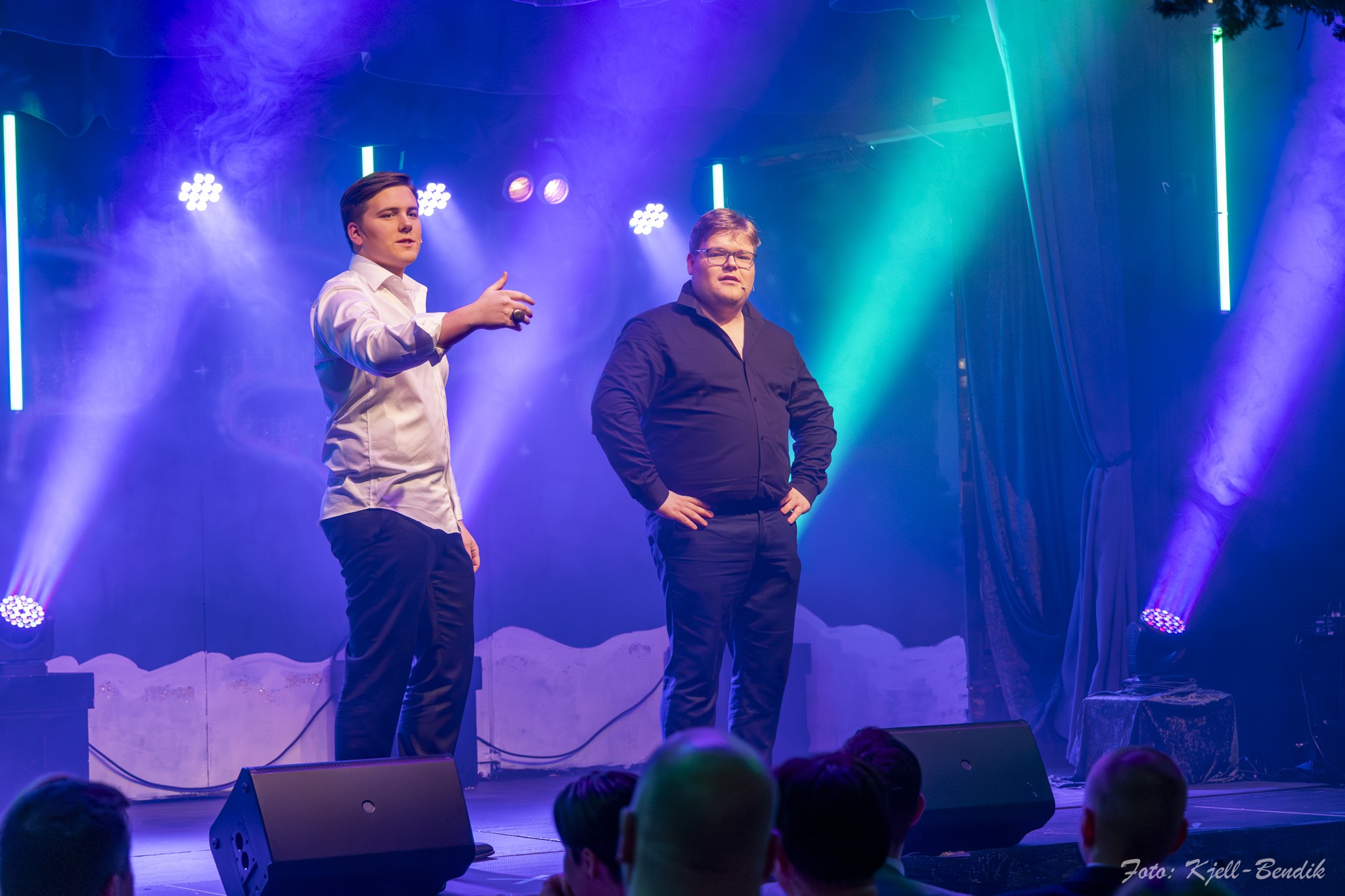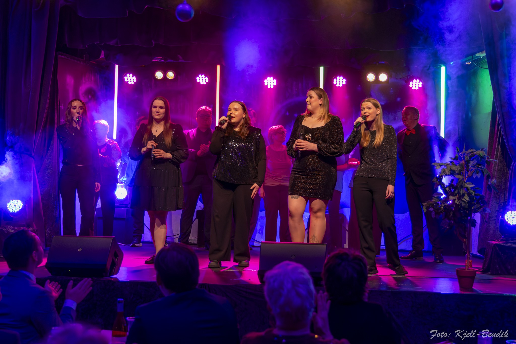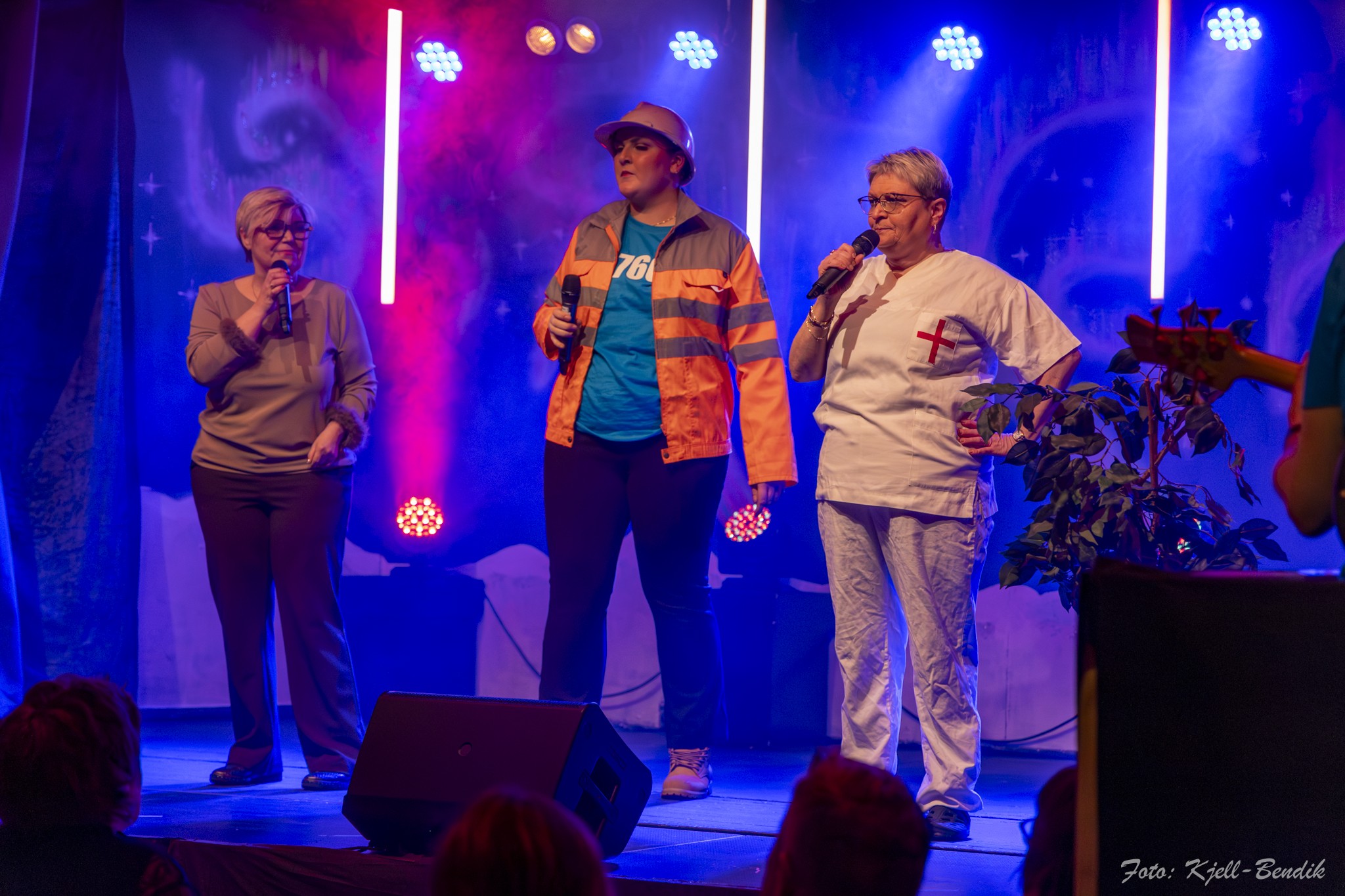 Det var et originalt anslag til revyen der vi fikk et kort møte med tidligere korpsunga. Når åpningsnummeret kom fra scenen så klappet publikum med.