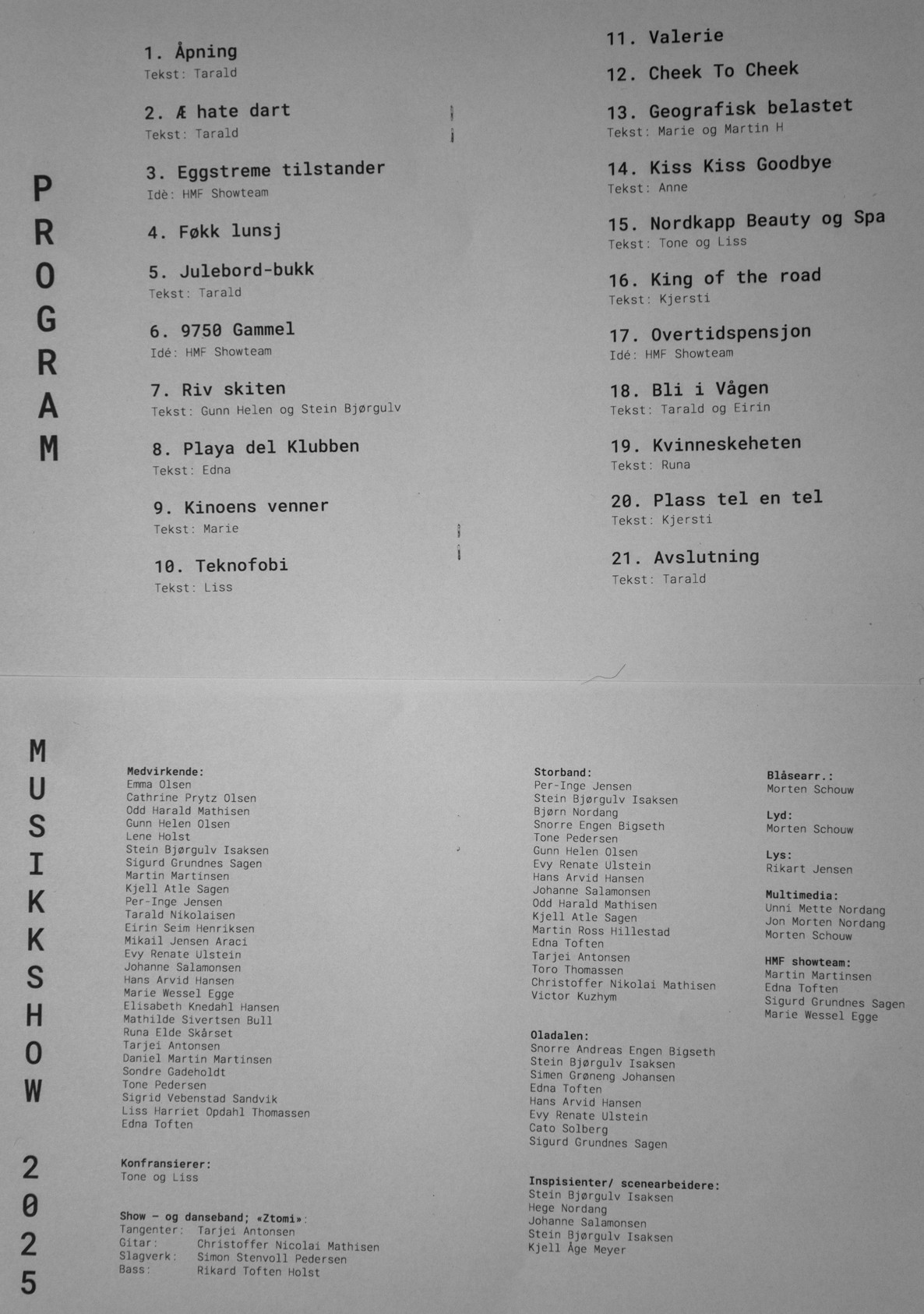 HMF har solide show tradisjoner og de blir tatt vare på og videreutviklet på en fantastisk måte. Vi fikk møte flere nye fjes på scenen noe som lover godt for framtiden.