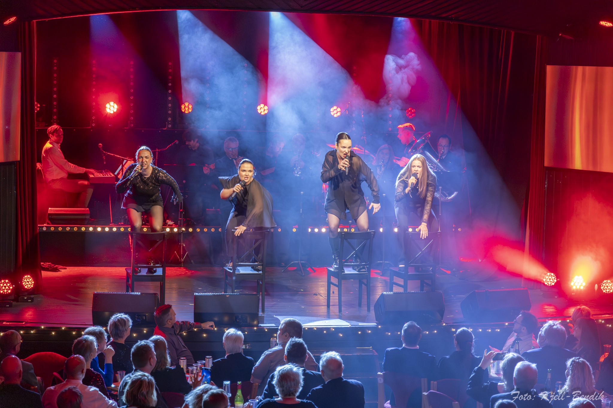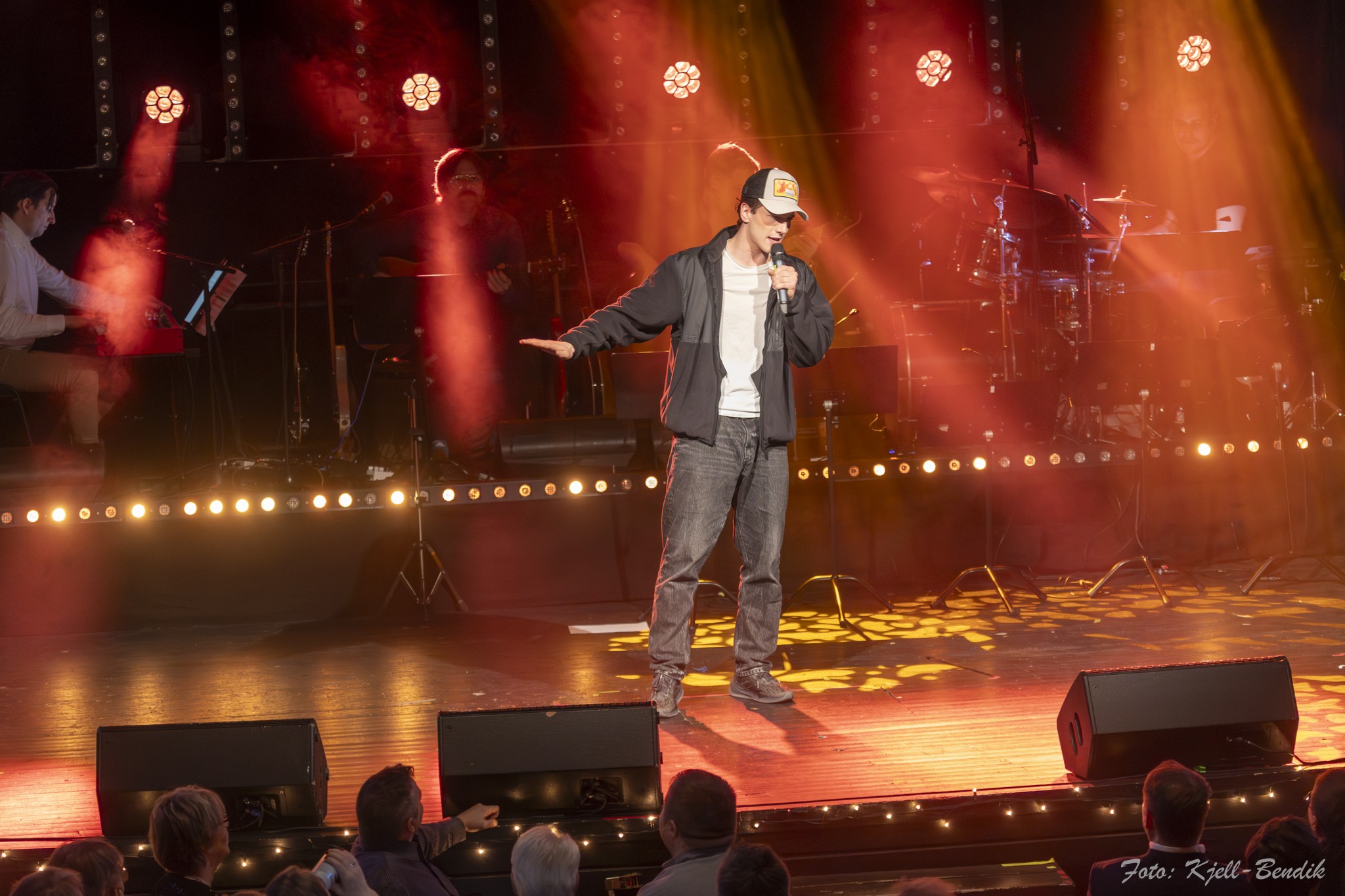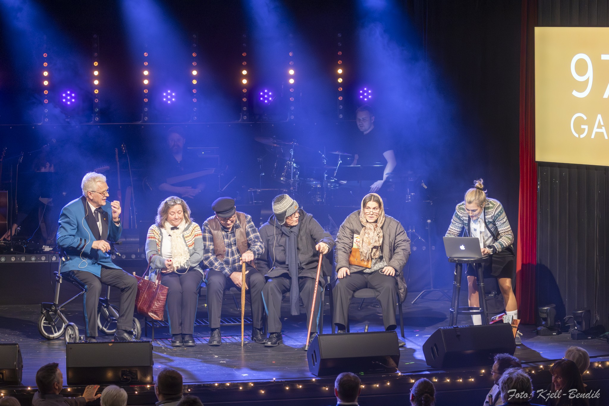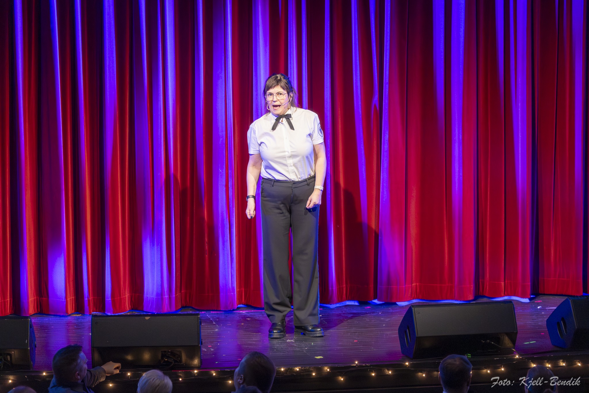 Blåjakkan startet med heftig åpningslåt og publikum klappet med. Så fikk vi møte kjente og kjære konferansier som gjorde en strålende jobb.