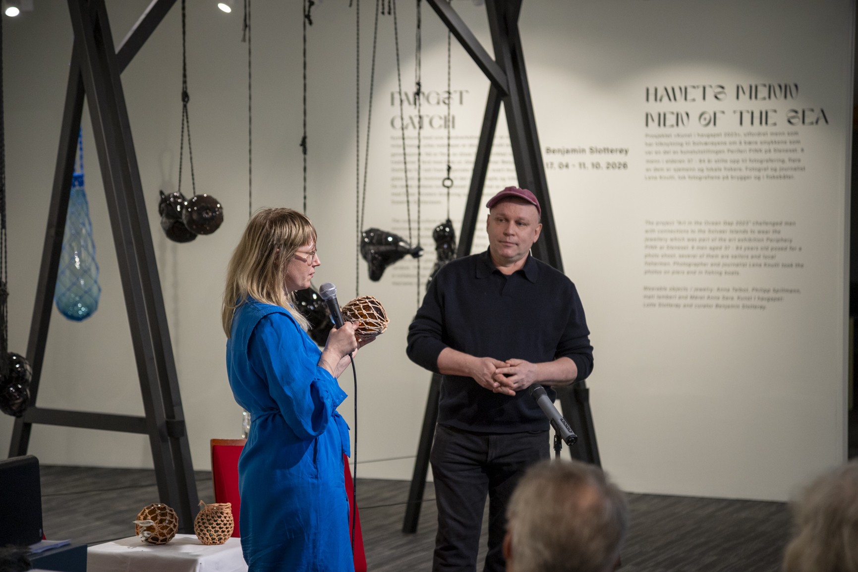 --Bak det vakre materialet ligger det et tydelig budskap om ansvar for naturen og havet, og om kystkulturen mange her har et nært forhold til, sier Emma Gunnarsson, formidler ved Nordkappmuseet, da hun ønsket velkommen.